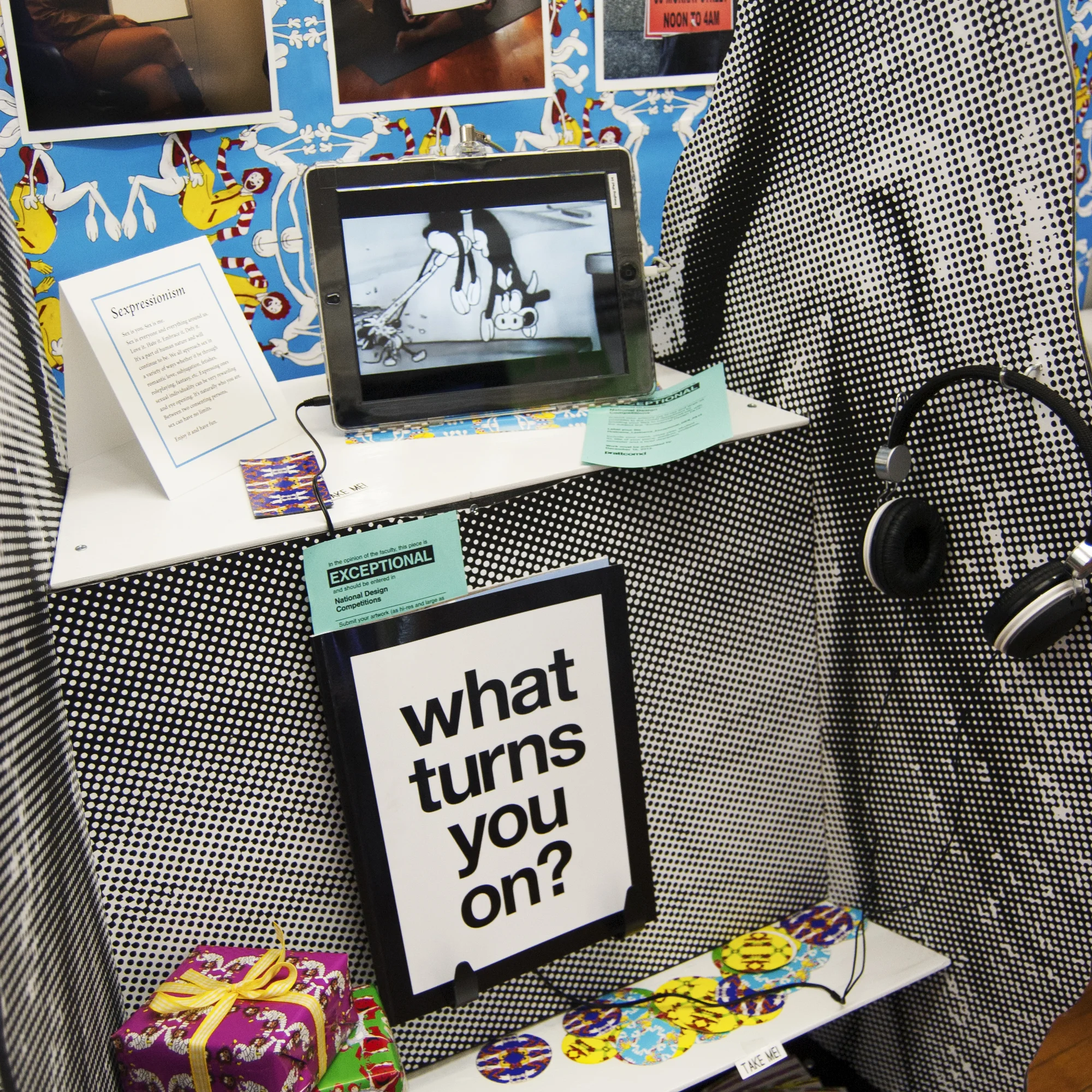 Textiles based taking characters we're all familiar with - in turn creating the subject of sexuality into a lighthearted entertaining topic of discussion - men & women of all ages.